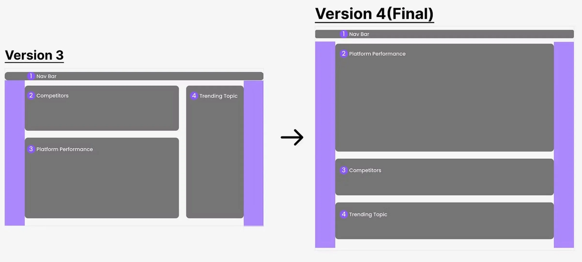 In the initial design ideation, we noticed that competitor content was getting more visual weight than intended. Since users approach information differently, we made adjustments to create a more balanced layout that better supports a variety of user preferences.