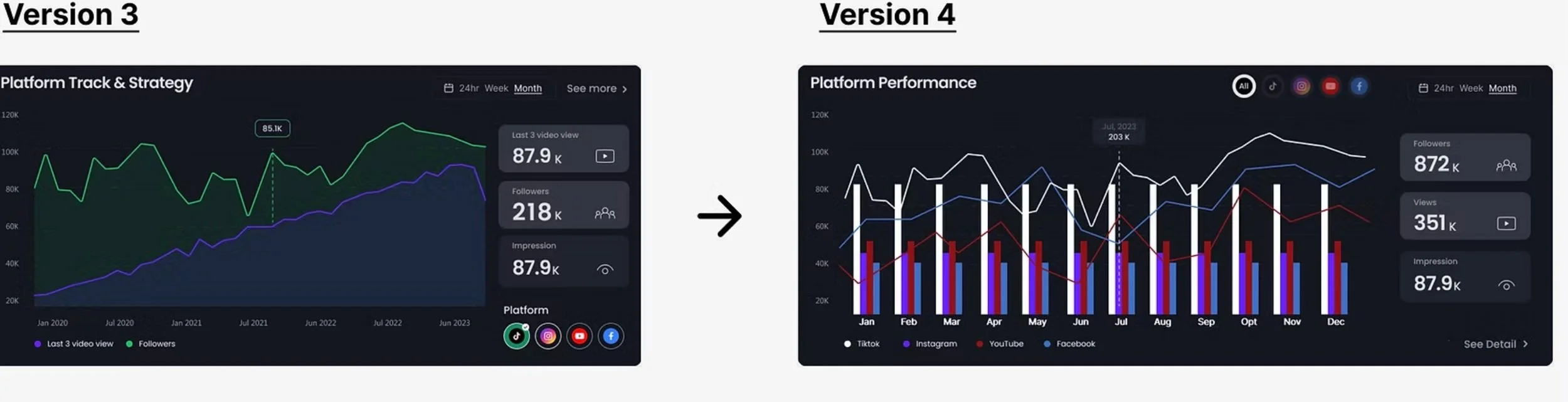 To help delivering actionable performance analytics tailored to empower users in optimizing their content and account strategies, we desinged features such as Account Overview with personalized optimization suggestions and AudienceInsights. The content creater can gain a clear understanding of engagement patterns and audience behavior.
